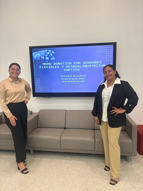 Durante la jornada, los estudiantes expusieron sus proyectos ante miembros de la comunidad universitaria y un panel de evaluadores compuesto por profesores y profesionales de la industria. Los proyectos presentados fueron: “Mano Robótica con Sensores Flexibles y Retroalimentación Háptica”, desarrollado por Elizabeth Herzog Román y Jorleen M. Aguilar Matos, el cual busca replicar los movimientos de una mano humana mediante el uso de sensores flexibles y ofrecer retroalimentación táctil integrados en un guante; y “Wind Data Acquisition System”, desarrollado por Reymundo E. Aquino Ruiz y Joshua Galíndez Marrero, que consiste en el diseño de un sistema de adquisición de datos para un túnel de viento subsónico compacto y modular para realizar pruebas aerodinámicas en drones.